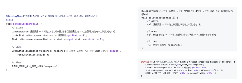 그리고 CRUD를 추상화하여 의도를 드러낼 수 있다. 메서드를 한글명으로 래핑하여 읽기 쉬운 테스트를 만들 수 있다.