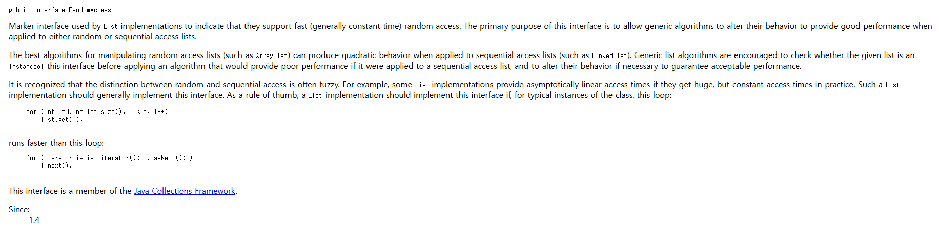 여기서 살펴보면 파라미터로 전달된 list의 클래스가 UnmodifiableList.class 혹은 UnmodifiableRandomAccessList.class가 아니라면 RandomAccess 인터페이스를 상속하는지 여부에 따라 달라지는데 쉽게 말하자면 빠른(일반적으로 일정한 시간) 임의 액세스를 지원한다는 것을 나타내는지 여부를 판단한다.