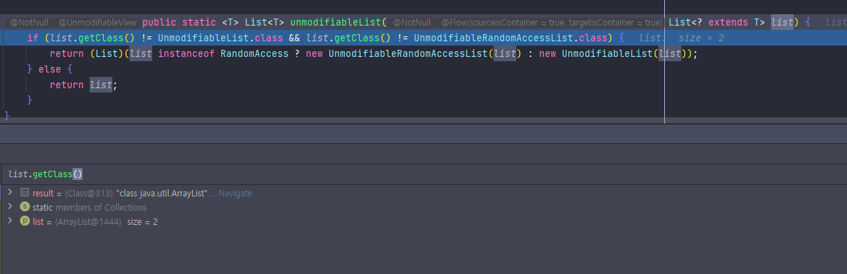 즉, 우리가 일반적으로 사용하는 ArrayList 또한 RandomAccess에 포함되어 new UnmodifiableRandomAccessList(list) 가 반환된다.