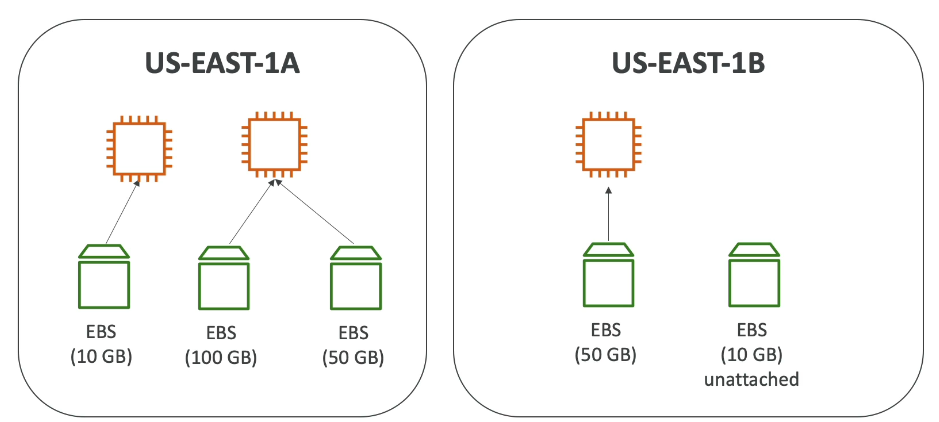 - AZ 제한: EBS 볼륨은 생성된 AZ에만 연결! 📍 다른 AZ 이동 어려움! 스냅샷 사용 시 다른 AZ로 이동 가능!