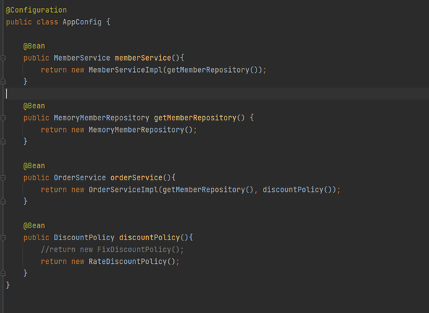 DiscountPolicy rateDiscountPolicy = ac.getBean("rateDiscountPolicy", DiscountPolicy.class);