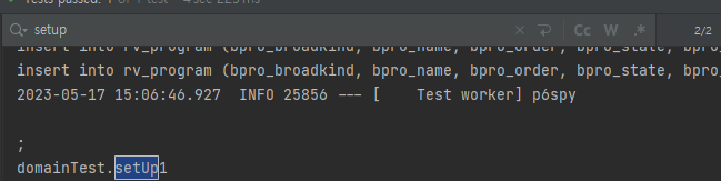 위의 방법을 통해서 시도했을 때, 당연히 DomainTest가 먼저 실행될거라 생각하겠지만 테스트해보면 setUp2가 실행 된 후에, setUp1이 실행됩니다.