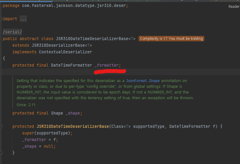 해당 _formatter를 따라가보면 ContextualDeserializer를 implements한 JSR3100DateTimeDeserializerBase라는 추상 클래스가 나오는데 멤버 변수로 갖고 있는 _formatter를 스프링 변경할 수 있을것 같다.