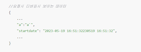 - 요청하는 startdate를 화면단에서 보낼때와 같이 "2023-05-19 17:53:00" 형식으로 변경해서 보내는 방법