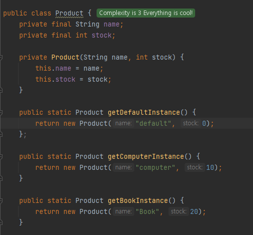 https://github.com/devMtn30/Effective_Java_3E/blob/master/src/main/java/chap02/item1/Product2.java