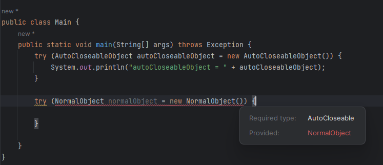 이 구조를 사용하려면 반드시 AutoCloseable 인터페이스를 상속해서 close 메서드를 구현해야 합니다.