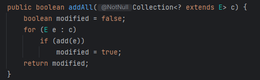 public boolean addAll(Collection<? extends E> c) {