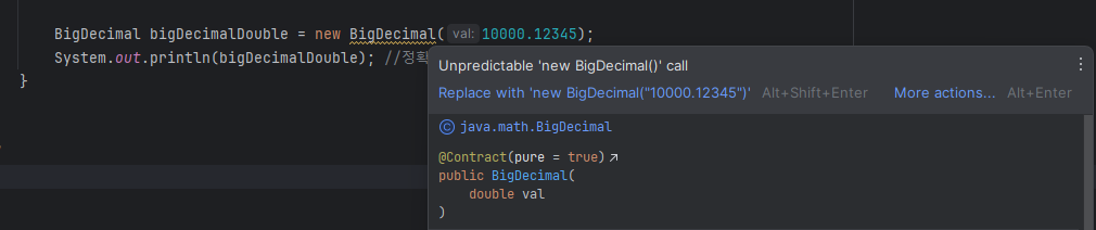 BigDecimal bigDecimalDouble = new BigDecimal(10000.12345);