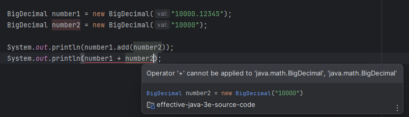 특이하지만 double 타입보다는 String 타입으로 BigDecimal을 사용하는걸 권장하고 있다.