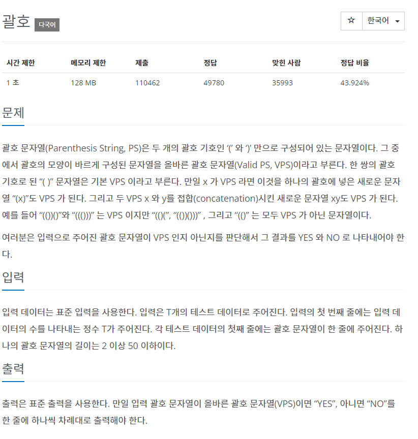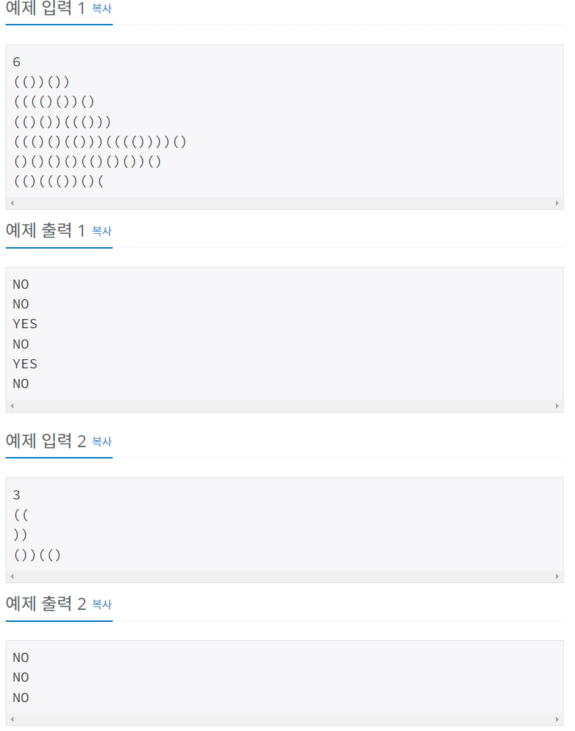 [백준]9012번 괄호 문제 풀이