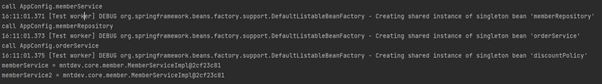 스프링 컨테이너는 싱글톤 패턴을 적용하지 않아도 Bean으로 등록된 객체의 instance를 싱글톤으로 관리해줍니다.
