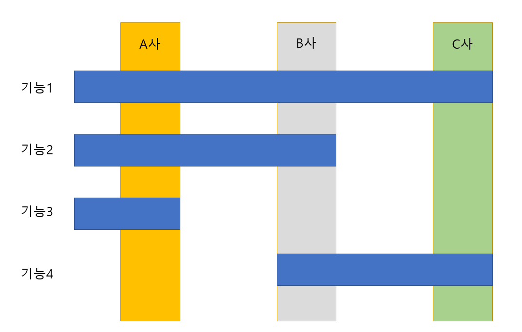 A,B,C사에는 각각 기능1을 통하여 인코딩을 하여 보내고